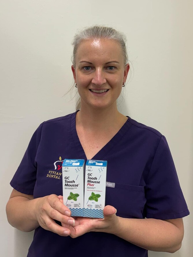 Squeeze a small amount of Tooth Mousse from the tube onto your finger and apply it to all tooth surfaces as advised by your dentist. Immediately after use replace the cap and clean the excess Tooth Mousse from the nozzle of the tube or if you have whitening trays, you can place on your tooth and then place your clean whitening trays in.